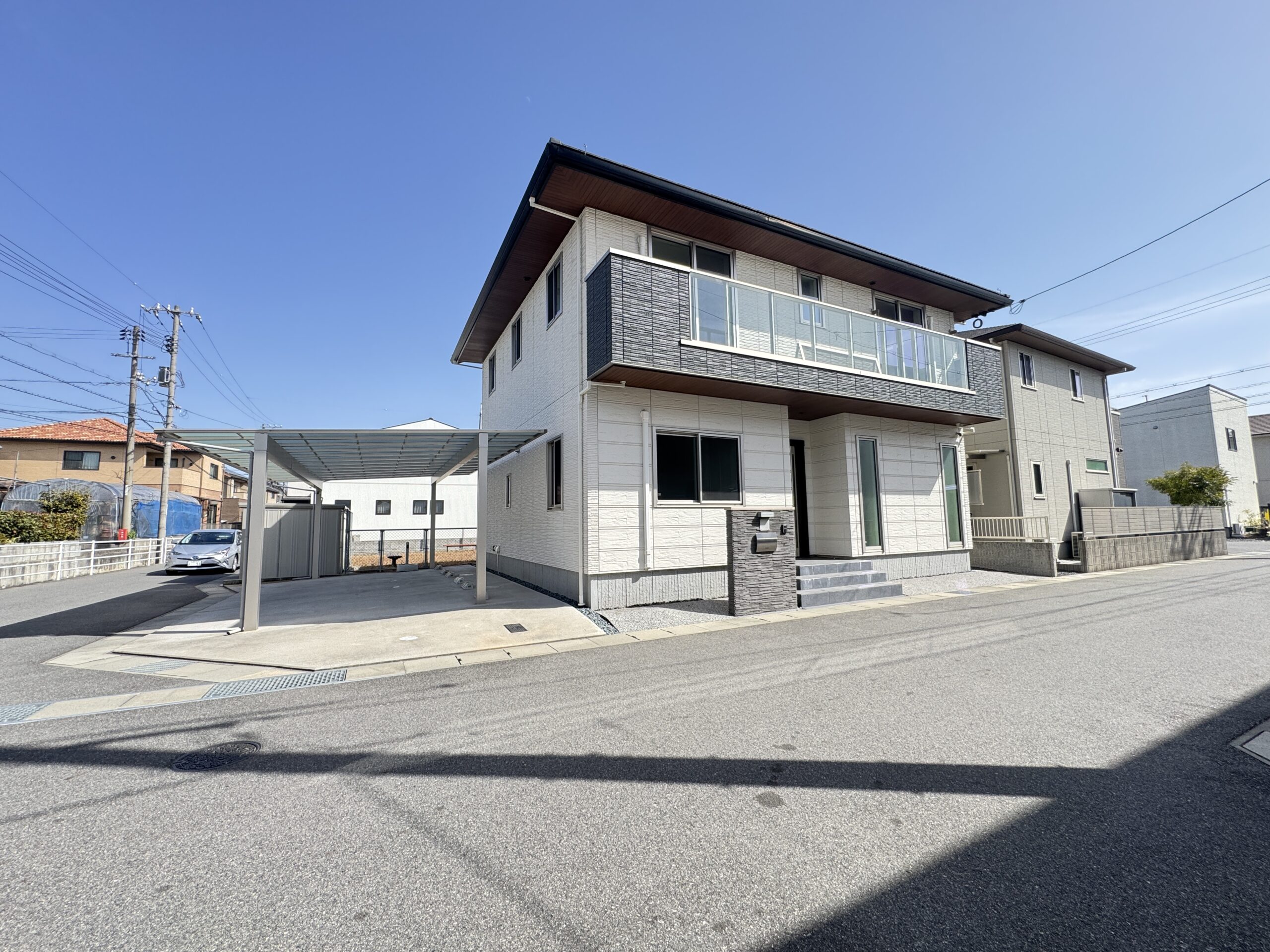 大和ハウス施工 軽量鉄骨造の家 カーポート付駐車場 庭付き